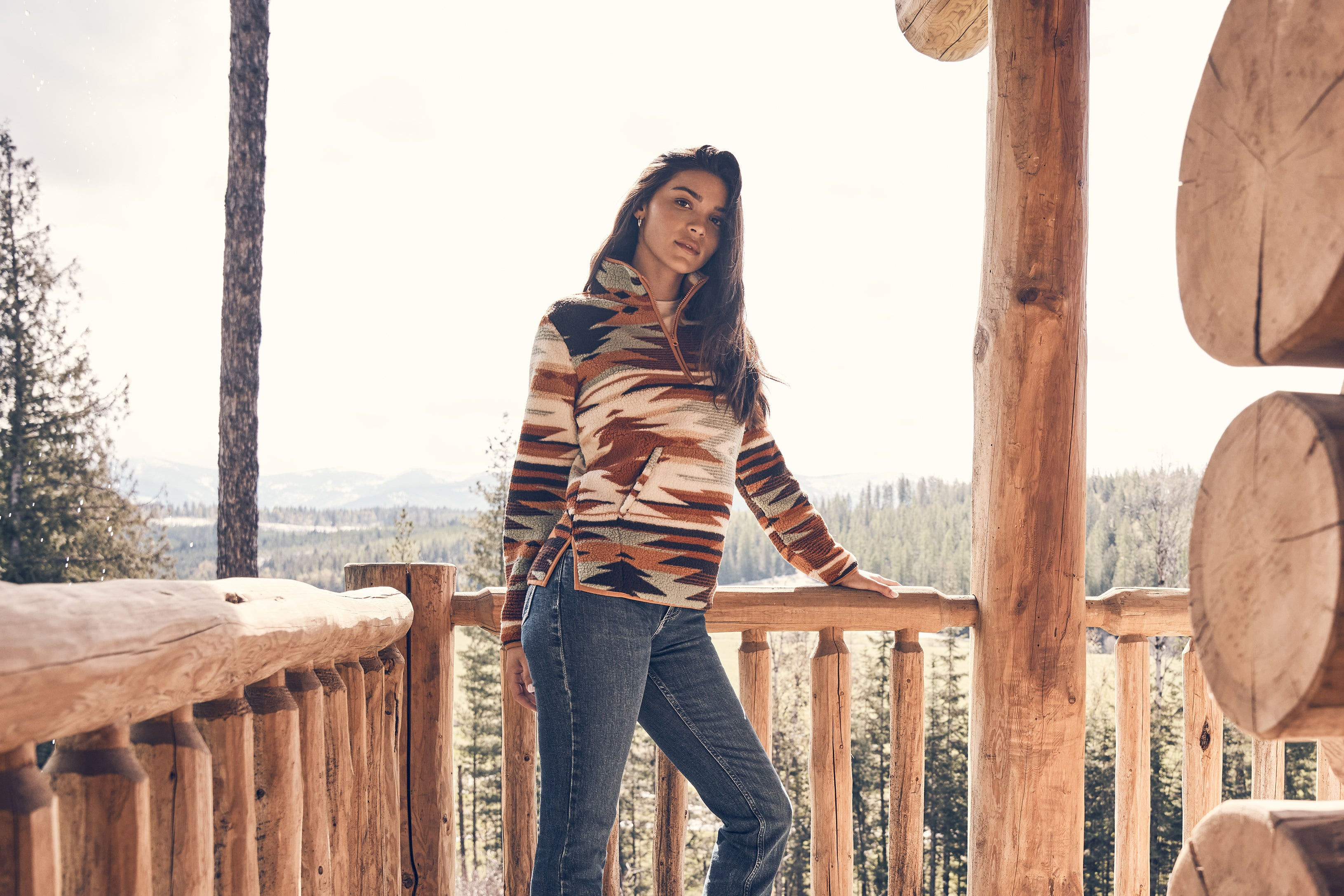 Wrangler Retro® Punchy Sherpa Zip Pullover - Brown